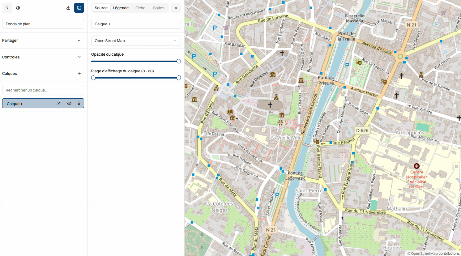 - Sources → choix (IGN, satellite, OSM)